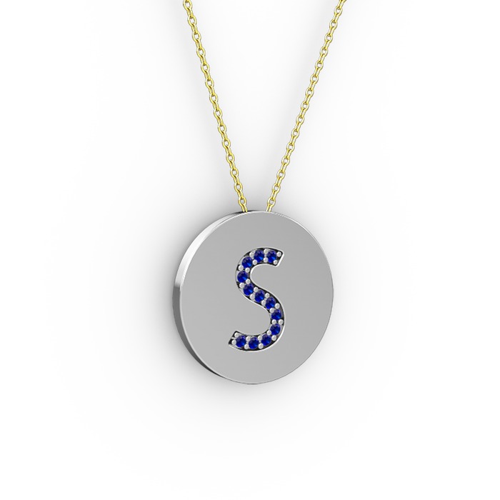 Lab safir 925 ayar gümüş kolye (40 cm altın rolo zincir)
