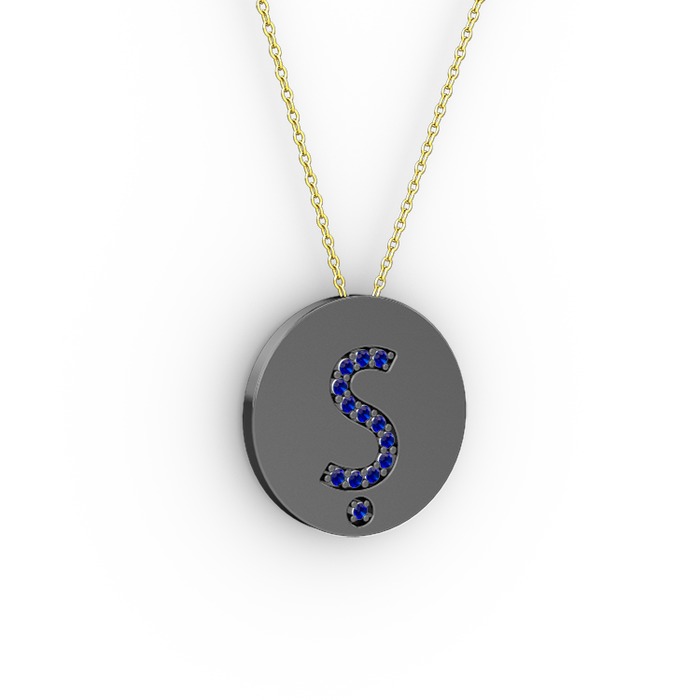 Lab safir 925 ayar siyah rodyum kaplama gümüş kolye (40 cm gümüş rolo zincir)