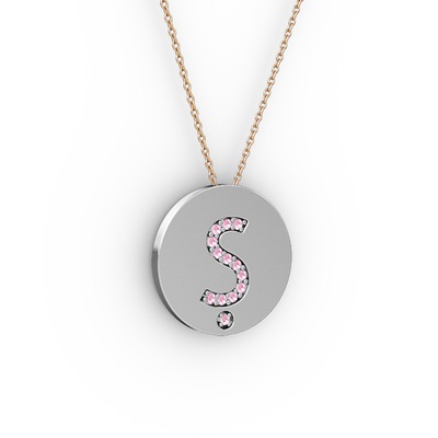 Pembe kuvars 14 ayar beyaz altın kolye (40 cm rose altın rolo zincir)