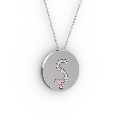 Pembe kuvars 8 ayar beyaz altın kolye (40 cm beyaz altın rolo zincir)