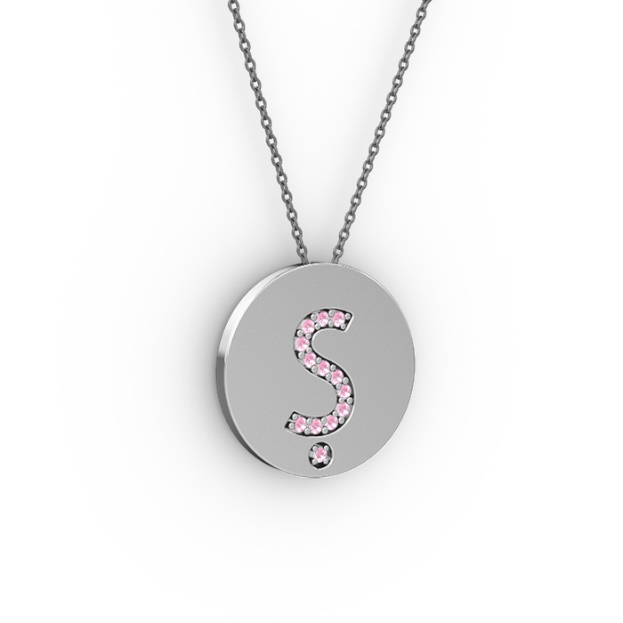 Ş Baş Harf Kolye - Pembe kuvars 8 ayar beyaz altın kolye (40 cm gümüş rolo zincir)