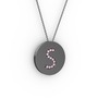Pembe kuvars 925 ayar siyah rodyum kaplama gümüş kolye (40 cm gümüş rolo zincir)