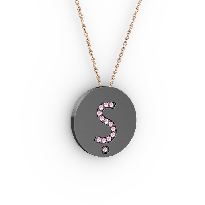 Pembe kuvars 925 ayar siyah rodyum kaplama gümüş kolye (40 cm rose altın rolo zincir)