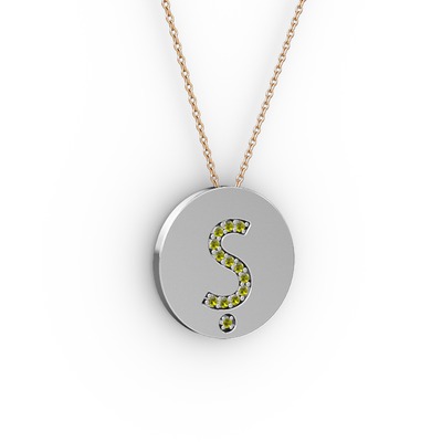 Peridot 8 ayar beyaz altın kolye (40 cm gümüş rolo zincir)