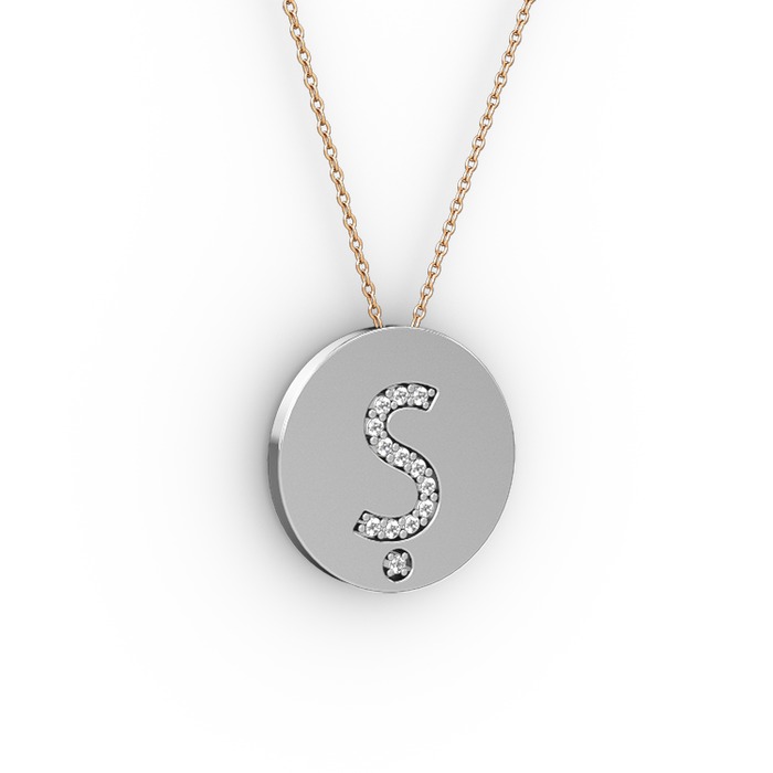 Pırlanta 14 ayar beyaz altın kolye (0.1144 karat, 40 cm gümüş rolo zincir)