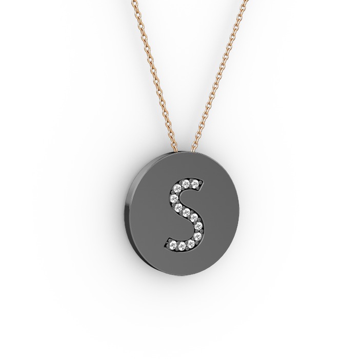 Pırlanta 925 ayar siyah rodyum kaplama gümüş kolye (0.1056 karat, 40 cm rose altın rolo zincir)