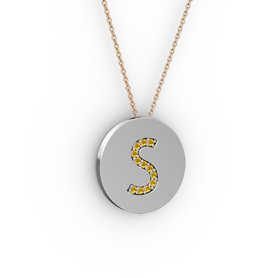 Sitrin 925 ayar gümüş kolye (40 cm rose altın rolo zincir)