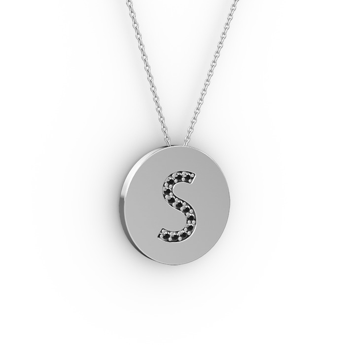 Siyah zirkon 14 ayar beyaz altın kolye (40 cm gümüş rolo zincir)