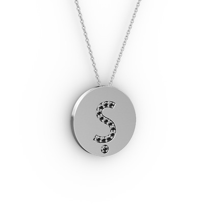 Siyah zirkon 18 ayar beyaz altın kolye (40 cm beyaz altın rolo zincir)