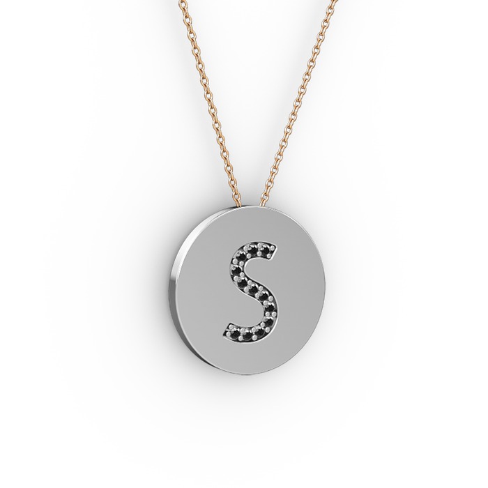 Siyah zirkon 8 ayar beyaz altın kolye (40 cm rose altın rolo zincir)