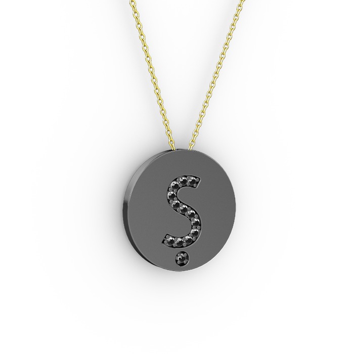 Siyah zirkon 925 ayar siyah rodyum kaplama gümüş kolye (40 cm altın rolo zincir)