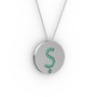 Yeşil kuvars 14 ayar beyaz altın kolye (40 cm gümüş rolo zincir)