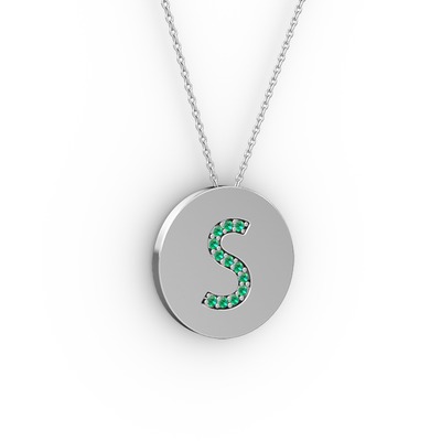 Yeşil kuvars 18 ayar beyaz altın kolye (40 cm beyaz altın rolo zincir)