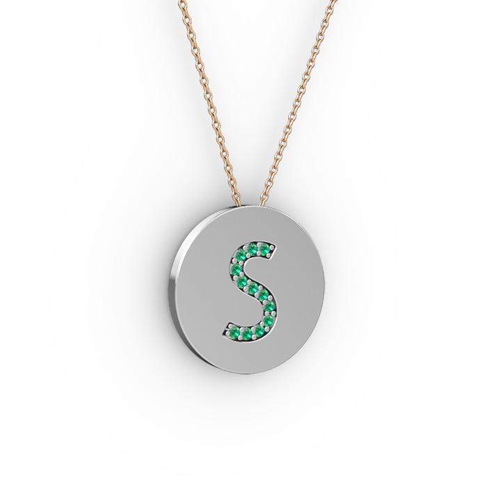 Yeşil kuvars 18 ayar beyaz altın kolye (40 cm gümüş rolo zincir)