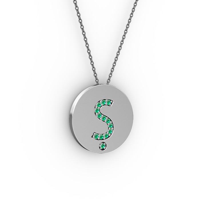 Yeşil kuvars 18 ayar beyaz altın kolye (40 cm gümüş rolo zincir)