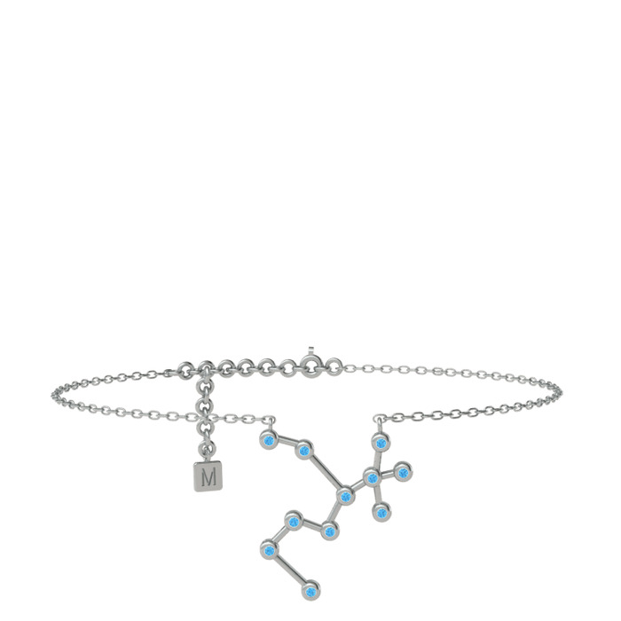 Akuamarin 18 ayar beyaz altın bilezik (20 cm beyaz altın rolo zincir)