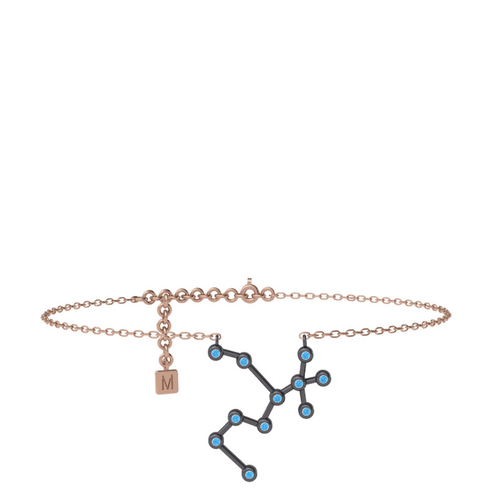 Akuamarin 925 ayar siyah rodyum kaplama gümüş bilezik (20 cm rose altın rolo zincir)