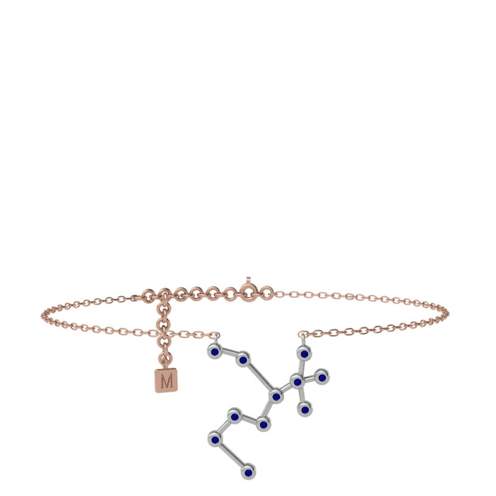 Lab safir 8 ayar beyaz altın bilezik (20 cm rose altın rolo zincir)