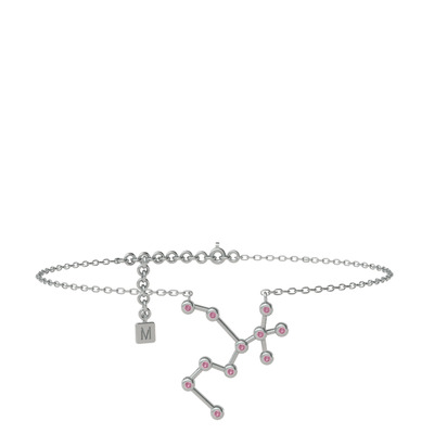 Pembe kuvars 925 ayar gümüş bilezik (20 cm gümüş rolo zincir)