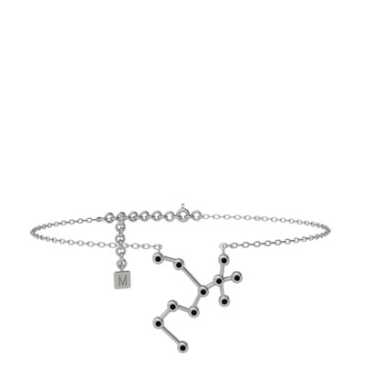 Siyah zirkon 925 ayar gümüş bilezik (20 cm beyaz altın rolo zincir)