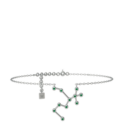 Yeşil kuvars 14 ayar beyaz altın bilezik (20 cm beyaz altın rolo zincir)