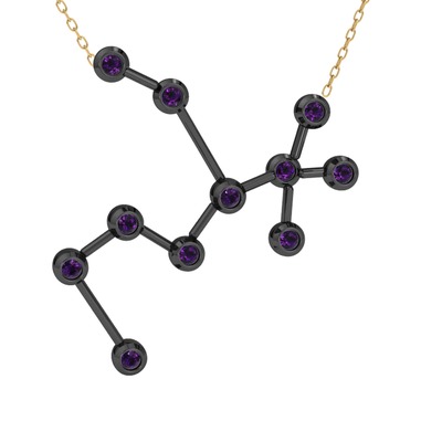 Ametist 925 ayar siyah rodyum kaplama gümüş kolye (40 cm altın rolo zincir)