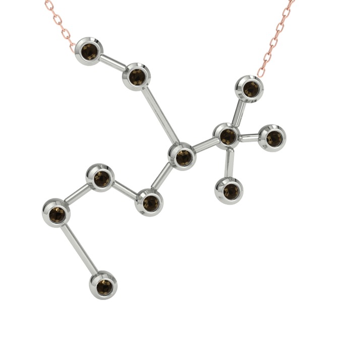Dumanlı kuvars 14 ayar beyaz altın kolye (40 cm rose altın rolo zincir)