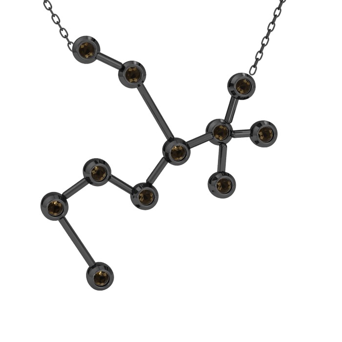 Dumanlı kuvars 925 ayar siyah rodyum kaplama gümüş kolye (40 cm gümüş rolo zincir)