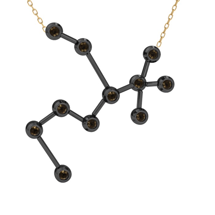 Dumanlı kuvars 925 ayar siyah rodyum kaplama gümüş kolye (40 cm gümüş rolo zincir)
