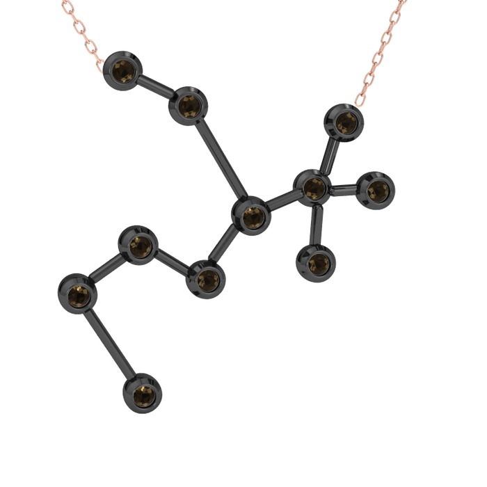 Dumanlı kuvars 925 ayar siyah rodyum kaplama gümüş kolye (40 cm rose altın rolo zincir)