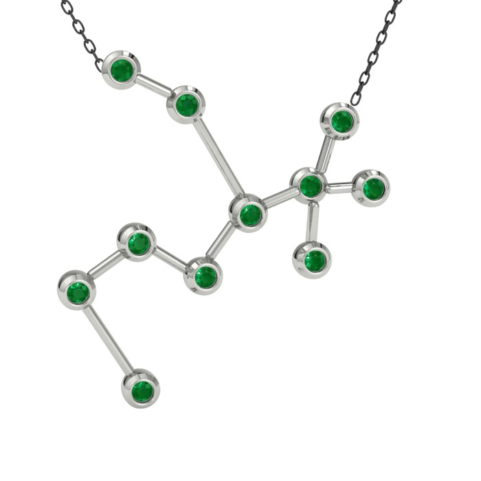 Kök zümrüt 14 ayar beyaz altın kolye (40 cm gümüş rolo zincir)