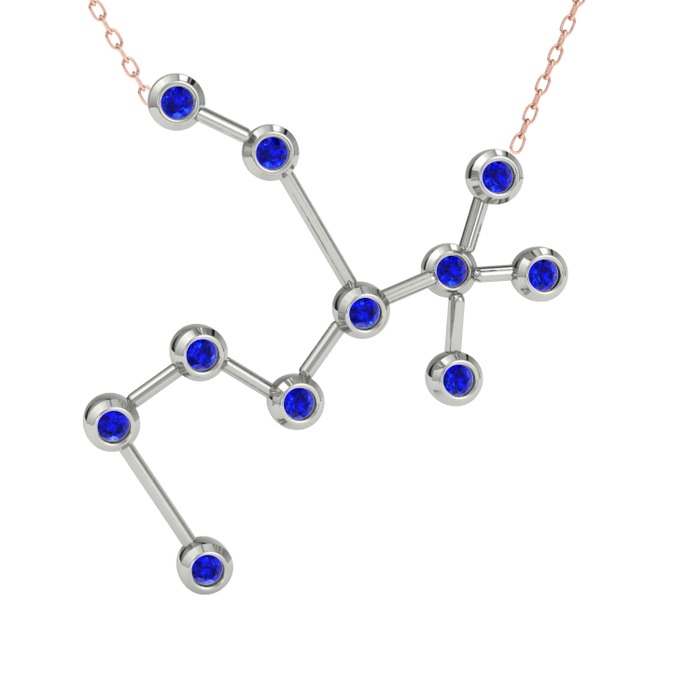 Lab safir 18 ayar beyaz altın kolye (40 cm gümüş rolo zincir)