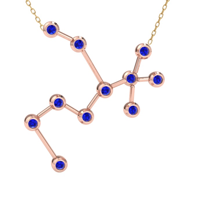 Lab safir 18 ayar rose altın kolye (40 cm altın rolo zincir)