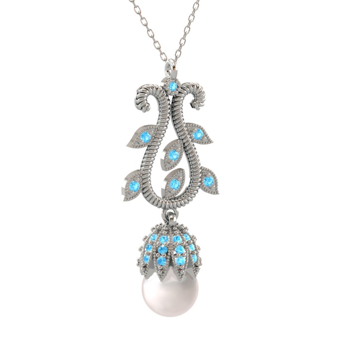 Inci ve akuamarin 8 ayar beyaz altın kolye (40 cm beyaz altın rolo zincir)