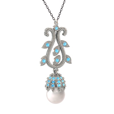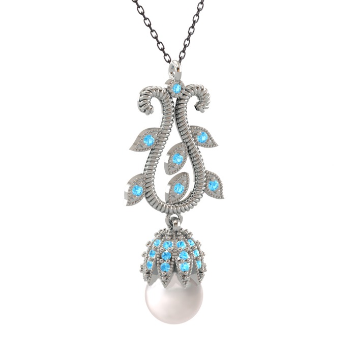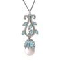 Inci ve akuamarin 8 ayar beyaz altın kolye (40 cm gümüş rolo zincir)