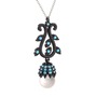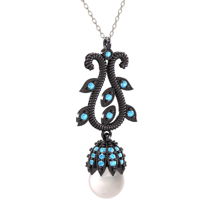 Inci ve akuamarin 925 ayar siyah rodyum kaplama gümüş kolye (40 cm beyaz altın rolo zincir)