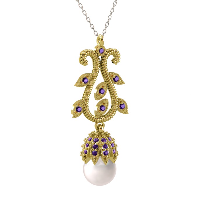 Inci ve ametist 8 ayar altın kolye (40 cm beyaz altın rolo zincir)