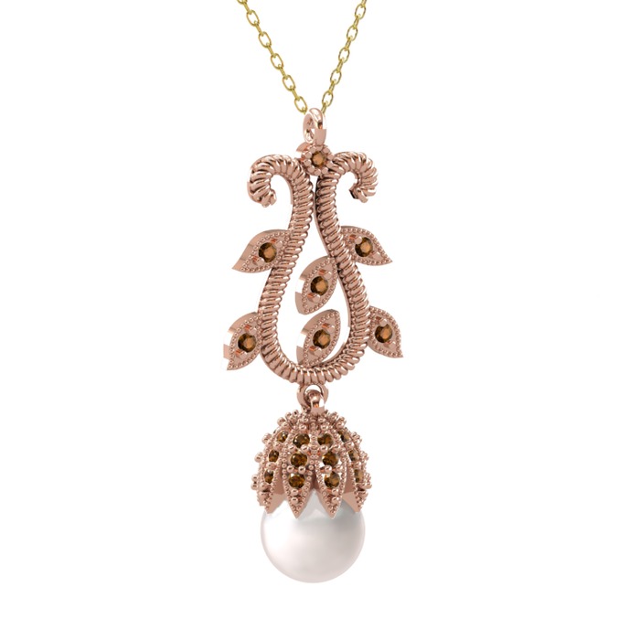 Inci ve dumanlı kuvars 14 ayar rose altın kolye (40 cm altın rolo zincir)