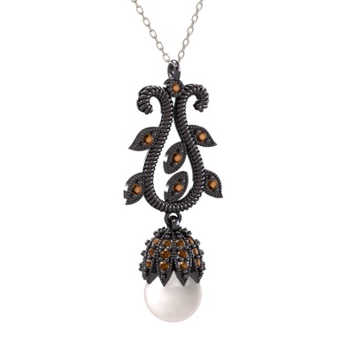 Inci ve dumanlı kuvars 925 ayar siyah rodyum kaplama gümüş kolye (40 cm gümüş rolo zincir)
