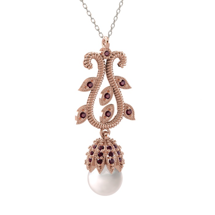 Inci ve kök yakut 14 ayar rose altın kolye (40 cm gümüş rolo zincir)
