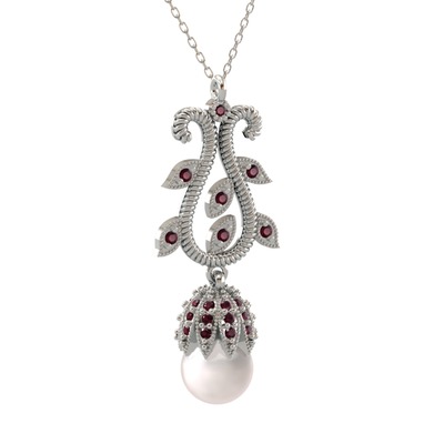 Inci ve kök yakut 8 ayar beyaz altın kolye (40 cm beyaz altın rolo zincir)
