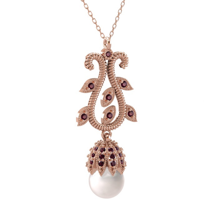 Inci ve kök yakut 8 ayar rose altın kolye (40 cm rose altın rolo zincir)