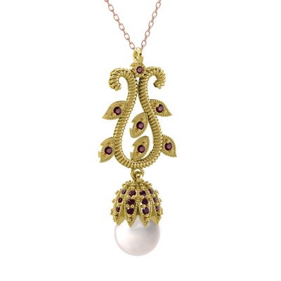 Inci ve kök yakut 925 ayar altın kaplama gümüş kolye (40 cm rose altın rolo zincir)