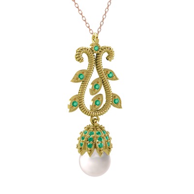Inci ve kök zümrüt 14 ayar altın kolye (40 cm gümüş rolo zincir)