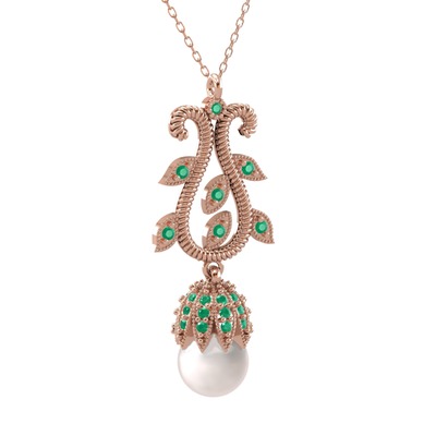 Inci ve kök zümrüt 14 ayar rose altın kolye (40 cm gümüş rolo zincir)