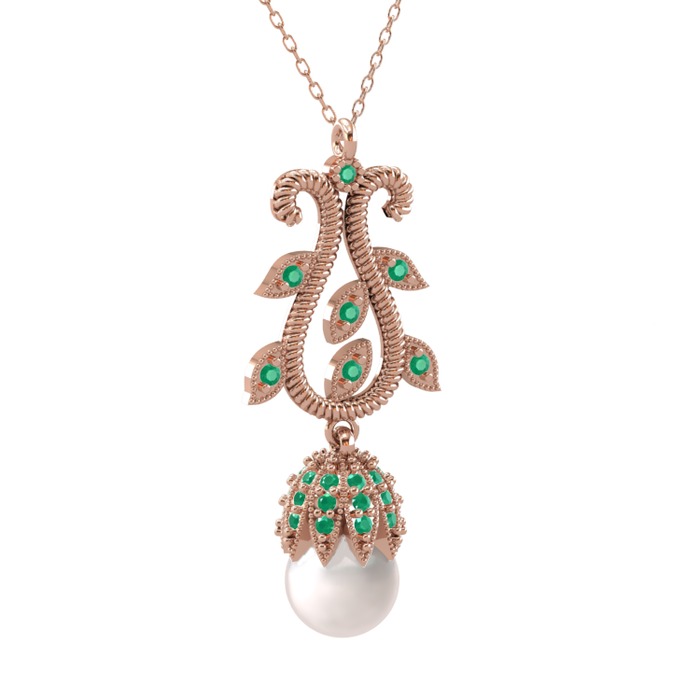 Inci ve kök zümrüt 14 ayar rose altın kolye (40 cm rose altın rolo zincir)