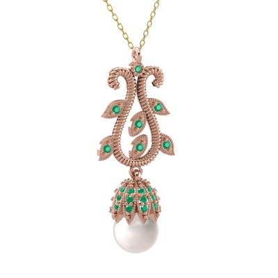Inci ve kök zümrüt 18 ayar rose altın kolye (40 cm altın rolo zincir)