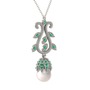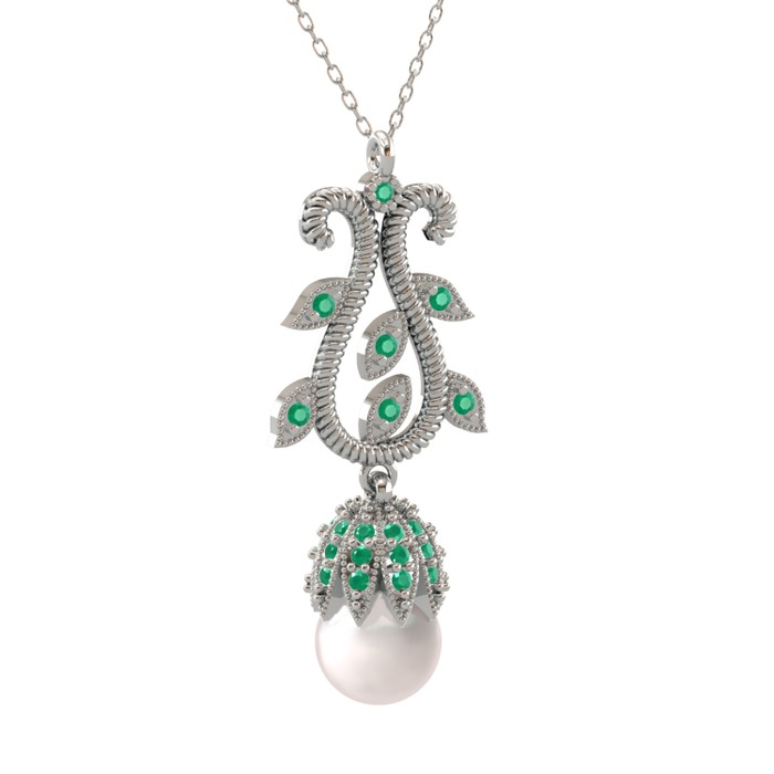 Inci ve kök zümrüt 925 ayar gümüş kolye (40 cm beyaz altın rolo zincir)