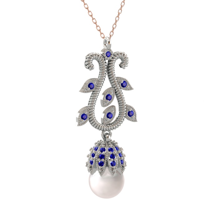 Inci ve lab safir 8 ayar beyaz altın kolye (40 cm rose altın rolo zincir)