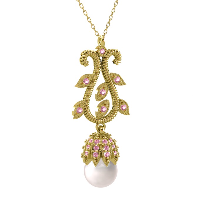 Inci ve pembe kuvars 14 ayar altın kolye (40 cm altın rolo zincir)